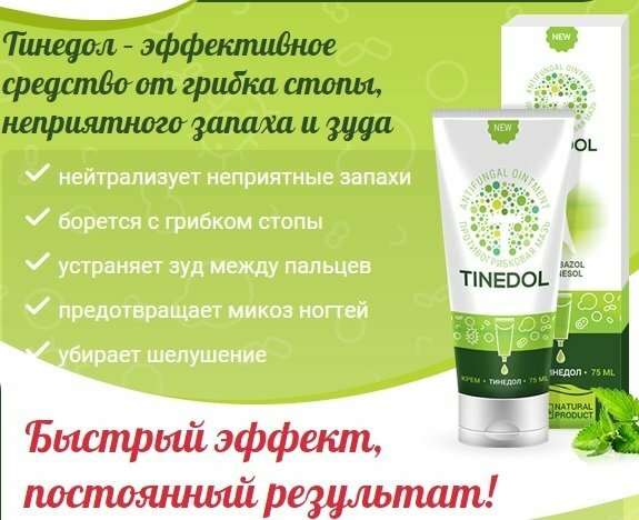 Цена: 249UAH шт. Купить. Крем Тинедол против грибка на ногах способен решать различные задачи, все чаще встречающееся в современном мире. Крем Тинедол (Tinedol) против грибка на ногах эффективное и моментальное лечение. Грибковые поражения кожи ног нередкое явление, аналоги. Онлайн-запись на прием к врачу. Тинедол крем от грибка.